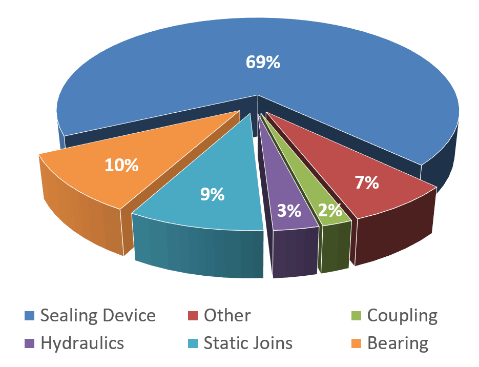 泵出現(xiàn)故障的原因有很多,但如下圖所示,超過三分之二的故障與密封裝置問題有關。隨著節(jié)約用水和減少需要處理的廢液數(shù)量的運動,該行業(yè)越來越依賴機械密封。隨著安裝人口的增長,直接由機械密封引起的泵故障的百分比也在增加。