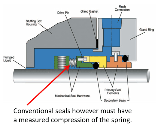 所有密封件都有某種類型的彈簧機構來提供密封面的初始壓縮,通常稱為預緊力。集裝式密封件具有內(nèi)置預緊力,僅需要安裝人員在啟動前移除固定片。